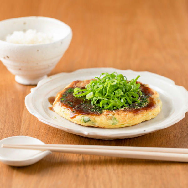 京野菜九条ねぎが入った京風お好み焼。1977年の創業以来、守り続けてきた『秘伝のだし』と京都井澤製粉製造の小麦粉を使用した生地は、京都どんぐり最大の特長である“ふわふわ食感”を冷凍食品でもお楽しみいただけます。京野菜九条ねぎは1cmと大きくカットして加えており、九条ねぎの甘みと香り、シャキシャキ食感が更に食欲をそそります。特製の濃厚ソースは京都宇治の天然水で仕込んだオリジナルです。