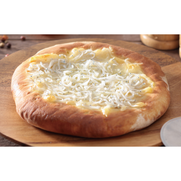 モチモチの生地に静岡の特産品である「しらす」と「桜えび」をのせました。素材とチーズだけのシンプルなピザなので、素材の風味がしっかり。お好みでオリーブオイルをかけるとさらに美味しくお召し上がりいただけます。