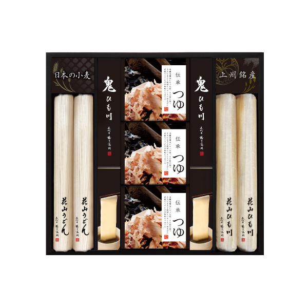 | 花山うどん・花山ひも川・鬼ひも川 各90g×2、伝承つゆ70g×6 |