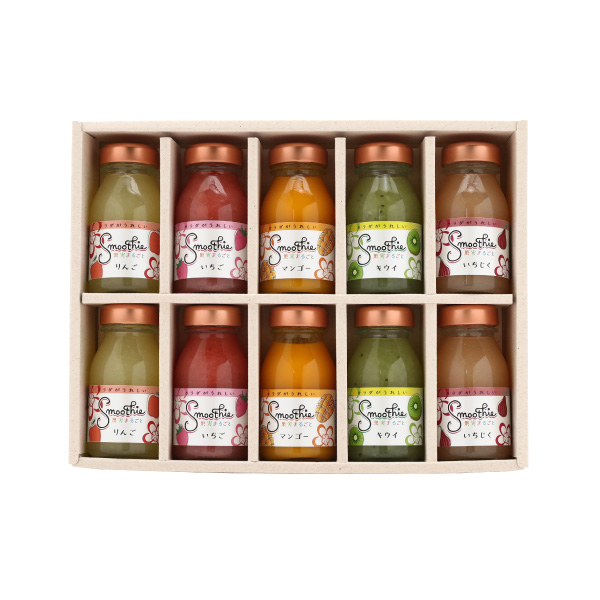 | 130g×10本[キウイ・りんご・いちじく・いちご・マンゴー×各2本(瓶入り)] |