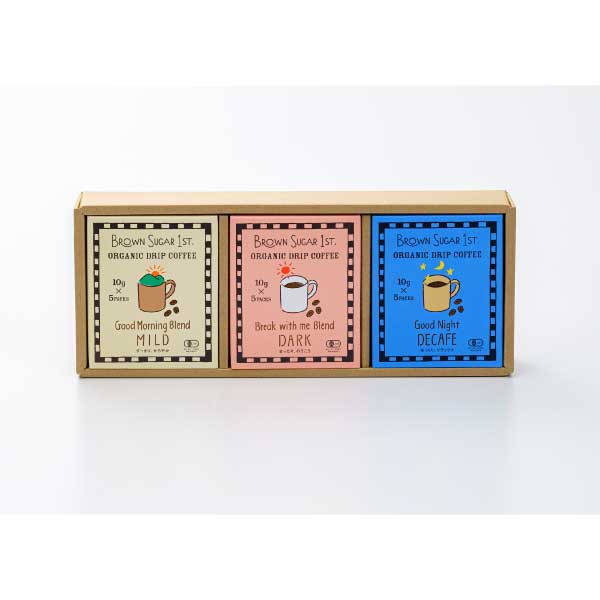 オーガニックのコーヒー豆を贅沢に使用し、朝向けにすっきりとした口当たりのマイルド、お昼向けに深いコクのあるダーク、夜のお休み前にはデカフェ、と3種類の味をご用意しました。
