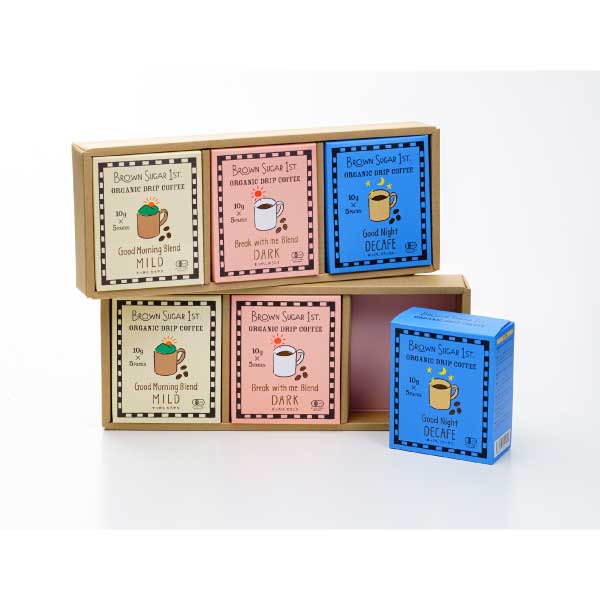 オーガニックのコーヒー豆を贅沢に使用し、朝向けにすっきりとした口当たりのマイルド、お昼向けに深いコクのあるダーク、夜のお休み前にはデカフェ、と3種類の味をご用意しました。
