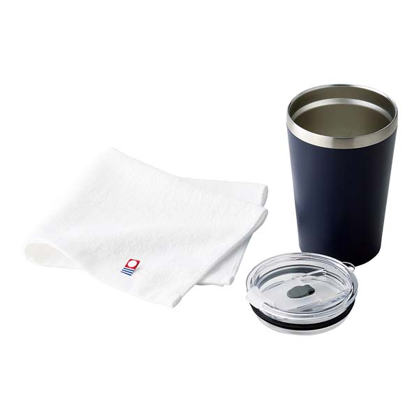| 蓋付真空二重構造タンブラー(直径8.8×高さ12.5cm) 400ml、ウォッシュタオル(34×30cm)×各1 |