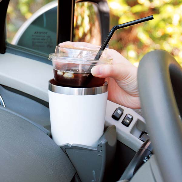 保温・保冷性に優れた真空二重構造のカップインタンブラー。コンビニのコーヒーをカップごと入れておけば美味しい温度が長続き。車のドリンクホルダーにも入り、水滴が垂れないので快適に使えます。
