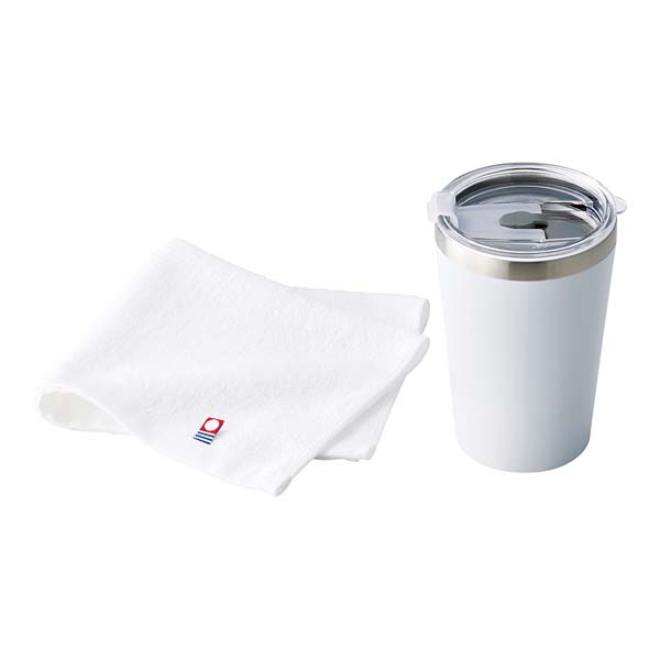| 蓋付真空二重構造タンブラー(直径8.8×高さ12.5cm) 400ml、ウォッシュタオル(34×30cm)×各1 |