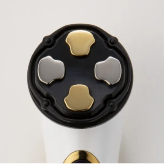 美の可能性を最大限に引き出す力を秘めた「ゼウスⅡ」。金色に輝く9つの素子は、肌をしっかりととらえ、まるでエステティシャンのタッピングを思わせるリズミカルな体感。手のひらで包まれるような温かさ、染みわたるような刺激で、至福のひとときにひたりましょう。